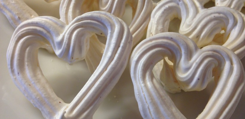 Jag gjorde då ”Billiga och bra maränger”. I dem ska det vara hjorthornssalt. Fy vad det luktar illa. Jag blandade även i lite pepparmintssmak för att marängerna inte bara ska smaka socker. Dessa spritsade jag också ut som hjärtan men enligt receptet ska man klicka ut dem på bakplåtspapper och det kunde jag lika gärna ha gjort för att de flöt ut och blev platta. Jag försökte med hjälp av min hjärtform stansa ut hjärtan men kakorna är väldigt krispiga och smular sönder. Det heter från och med nu ”Alla hjärtans dag blobbar”! Det luktade inte gott när jag öppnade ugnsluckan. Hjorthornssalt är speciellt, jag hoppas att marängerna är delikata ändå.