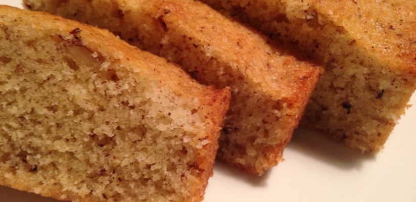 Smörj och bröa en form som rymmer ca 1 liter. Mal eller hacka nötterna riktigt fint. Rör smöret och sockret pösigt och tillsätt sedan ett ägg i taget och rör smeten vit och skummig. Tillsätt nötterna och mjölet blandat med bakpulvret och häll smeten i formen. Grädda i nedre delen av ugnen på 175 graders värme i ca 30 minuter.