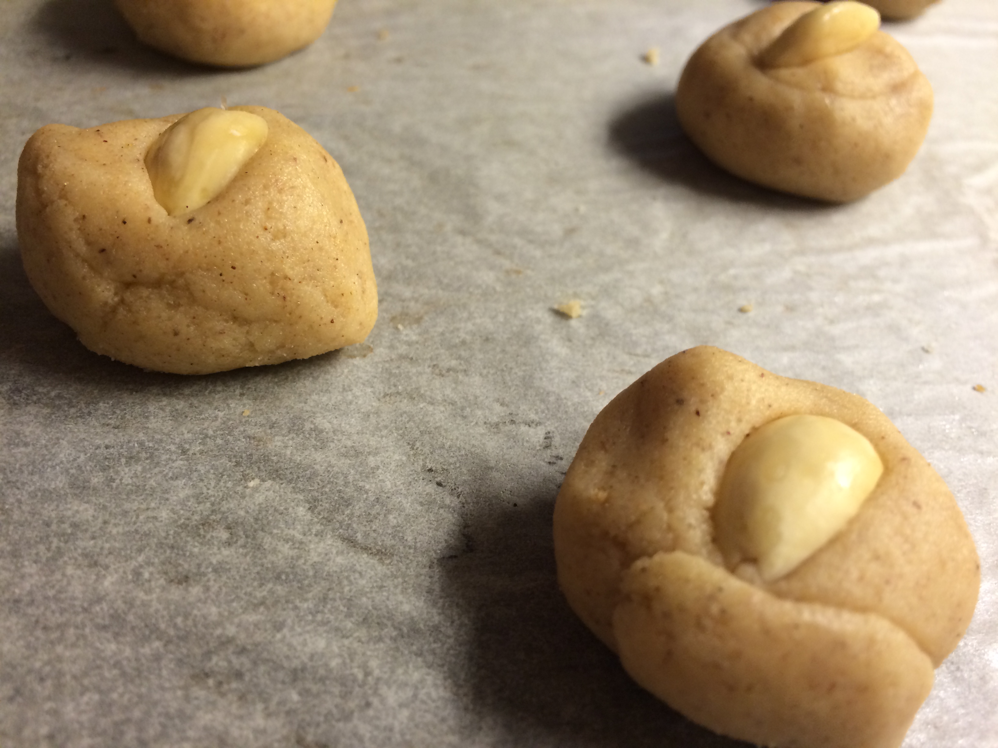 Att baka pepparnötter var lätt. Alla ingredienser blandades samman till en deg som påminner om vanliga pepparkakor. Degen rullas till bollar som läggs på en plåt och så dekoreras de med mandeln. Kakorna ska vara genomtorra och bruna och de är lite torra och tråkiga tycker jag.