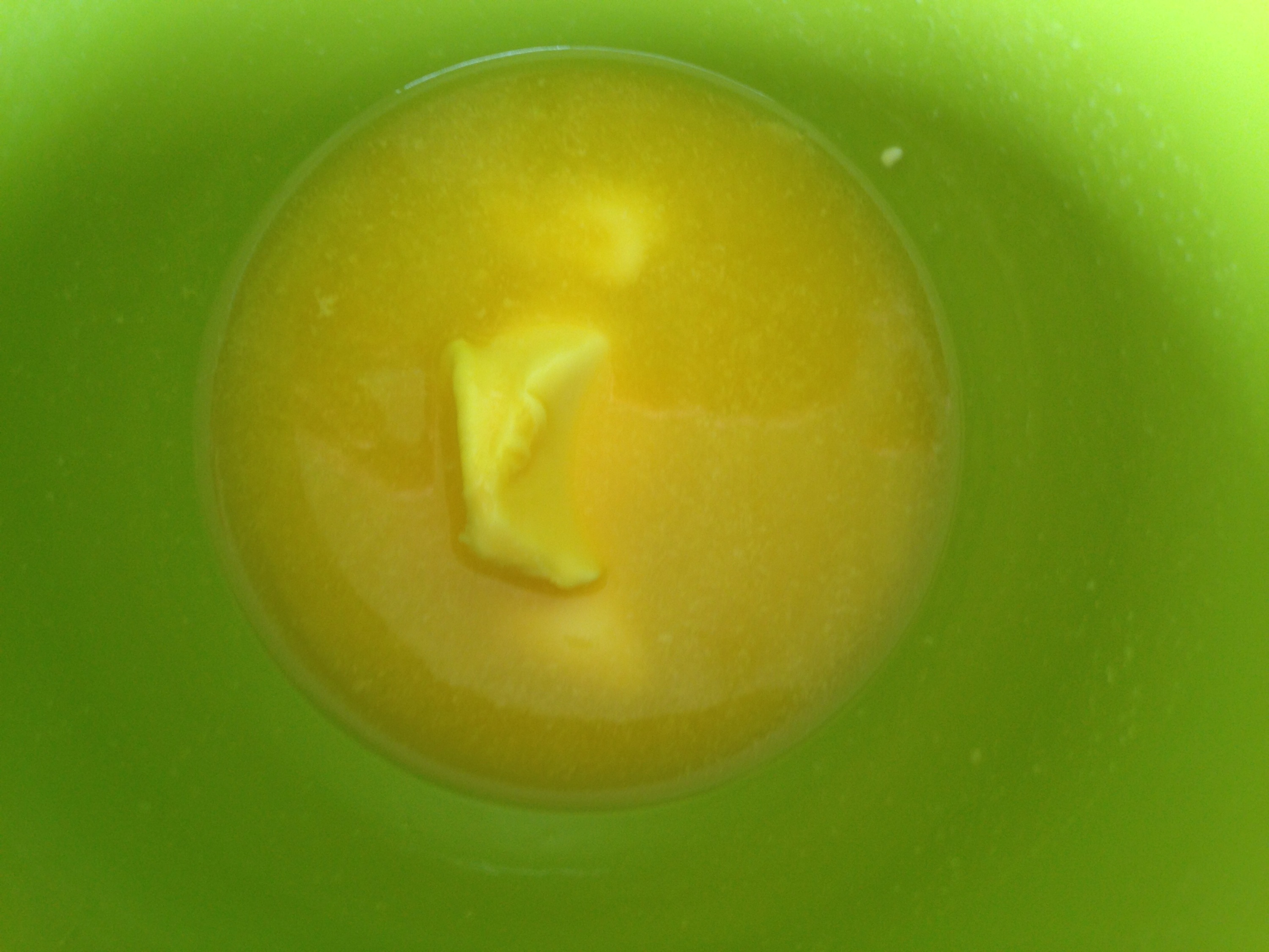 Precis som till Ajakakorna så satte jag in smöret i micron en kort stund för att få det riktigt mjukt. Smöret fick stå någon sekund för länge i micron och hann byta form från fast till flytande innan jag hann stoppa ugnen. Tyvärr, trodde jag först och vad bra tyckte jag sen.