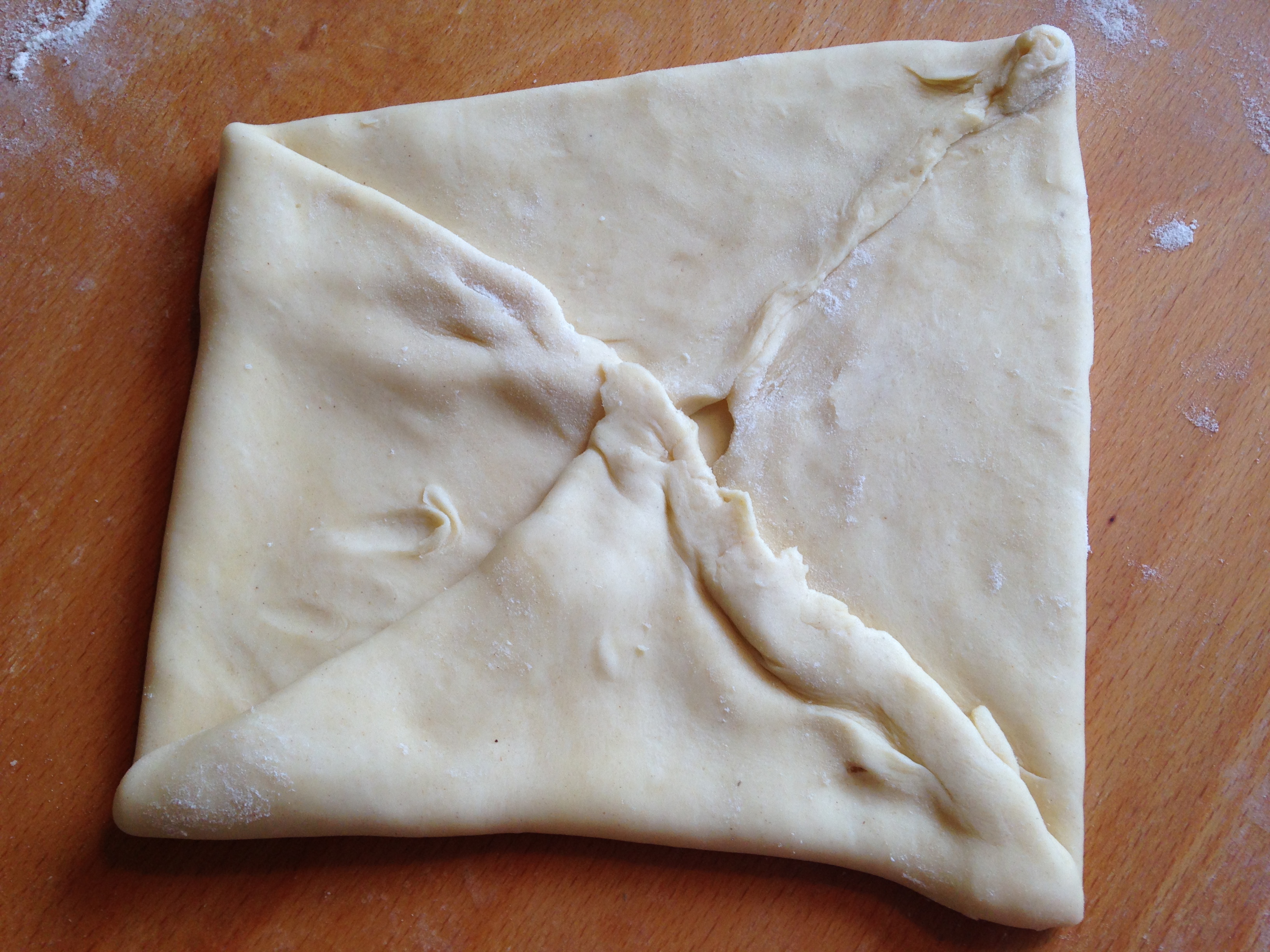 Degen fick kavlas ut flera gånger innan den var slut och jag lade varje gång de lösa bitarna ovanpå varandra i en hög. Smördeg ska bli frasig och får inte knådas ihop utan bitarna ska ligga i lager. Jag tror att kakorna blev bättre och bättre ju fler lager de fick.