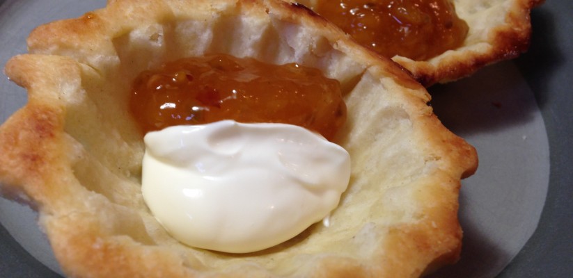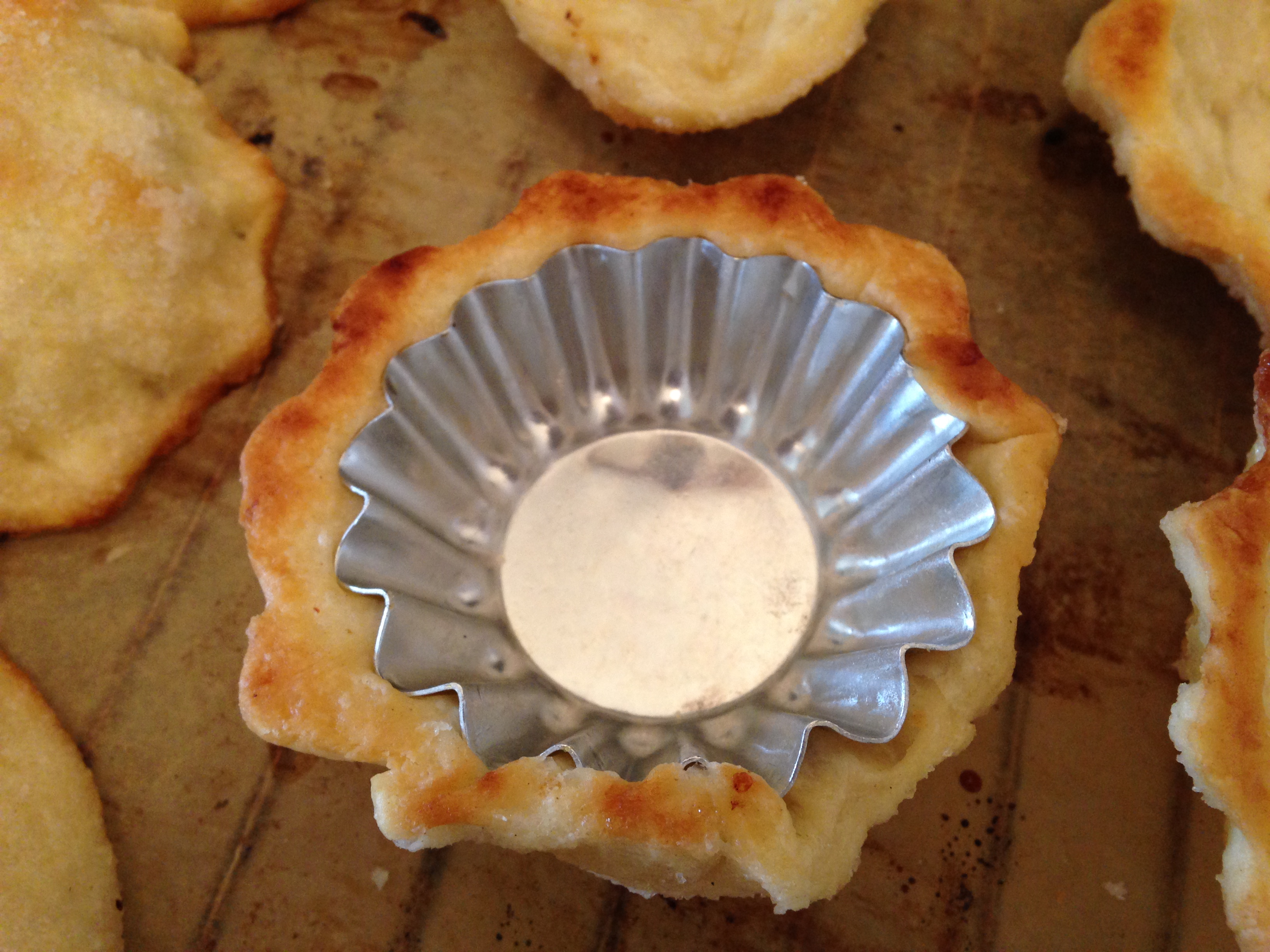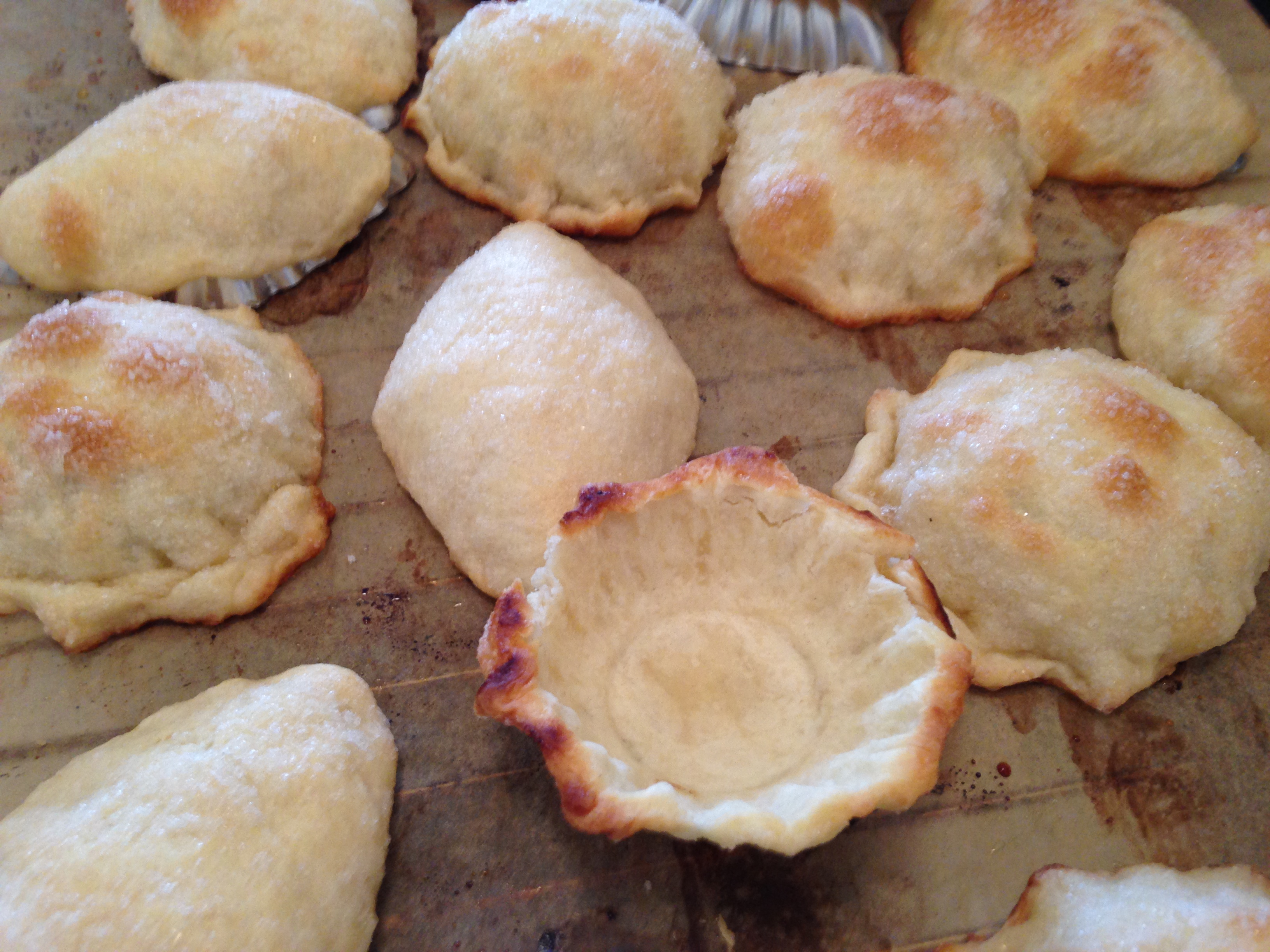 När degen var slut och plåten full skulle kakorna stå och vila i minst en kvart innan de gräddades. Detta för att de skulle hålla formen i ugnen. Några av mina kakor verkade inte ha förstått det där att de faktiskt hade fått vila för de fluffade och puffade upp i alla fall, men de flesta blev torra, frasiga och fina skålar redo att fyllas.